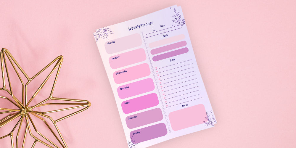 Weekly planner with pink and purple theme